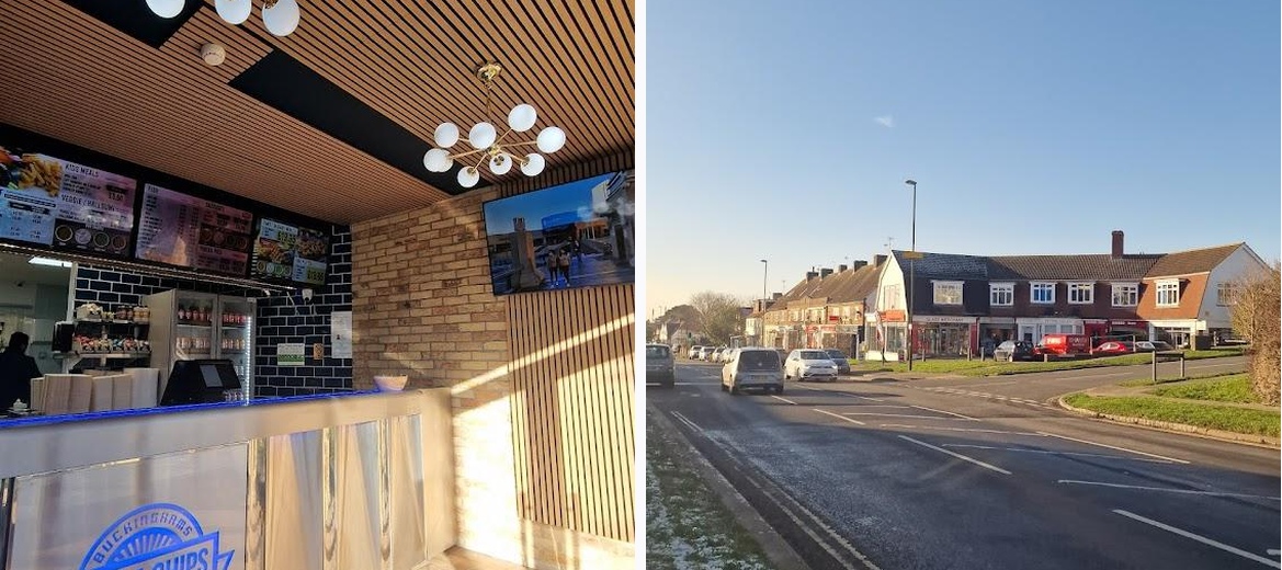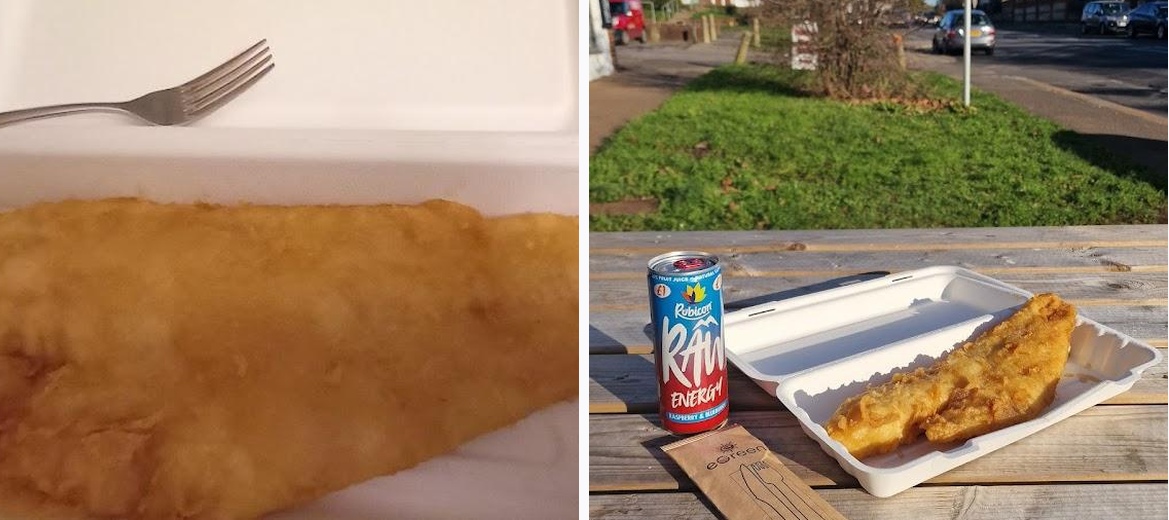 I was new to the area and looked for proper food neae the hospital. It is a 7minute walk from the hospital :) I chanced upon Buckinghams. It is along the road, has a big signage -- it is a clean fish and chip shop! The staff/owner was very lovely and helped me pick my order. They were on it! I had the large cod cooked to perfection. Served with a wedge of lemon. Salt and vinegar on the side if you fancy. They had seating outside where I enjoyed my meal. Sun shining, cool wind, awesome food, warm tummy, happy me. The owner threw in a can of energy drink for me -- thank you for that sir, it really helped me! Cutlery included for my take away! I am a very satisfied customer! They accept card payments. There is seating inside the shop and they kindly offered me to sit in but I was happy to bask under the sun outside. You can park near and wait for your order and then pop back in your car and go. :)